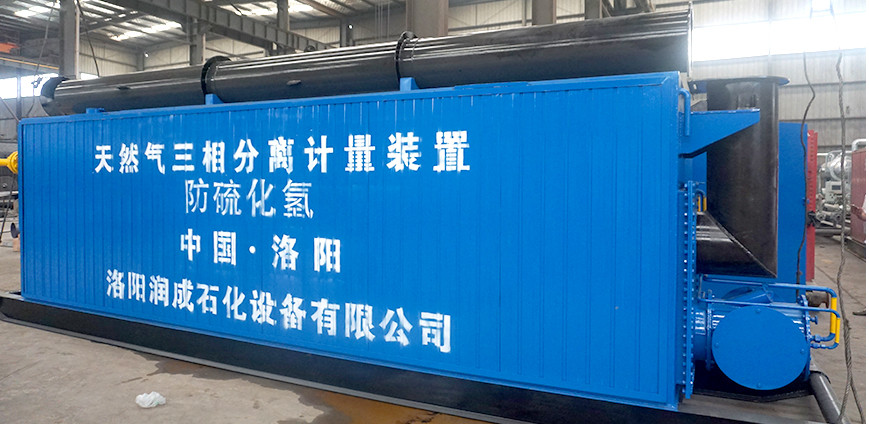 防硫防酸三相分離器具有整體防硫防酸功能。該裝置采用先進的制作工藝和材料,使其能有效滿足于酸化后排酸地面計量工作。以往常規分離器由于 制作工藝和材料的原因,決定它們不能有效防止酸液對其的腐蝕,而該設備可保障底層流體在 PH>1 時進入地面流程分離計量,有效解決了酸化壓裂下的采試氣 計量工作要求,減少了酸后排空時間,提高了作業效率,特別是確保了含硫化氫井測試作業的安全環保和人身健康。